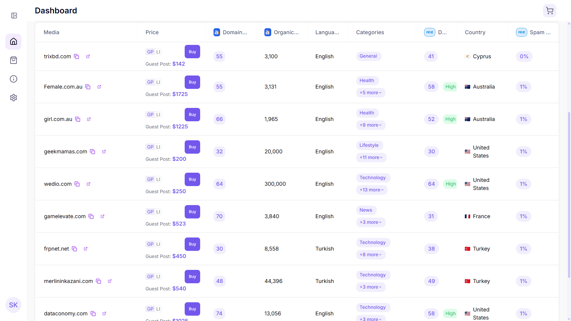 Sign up using your business details to access our marketplace of verified websites.